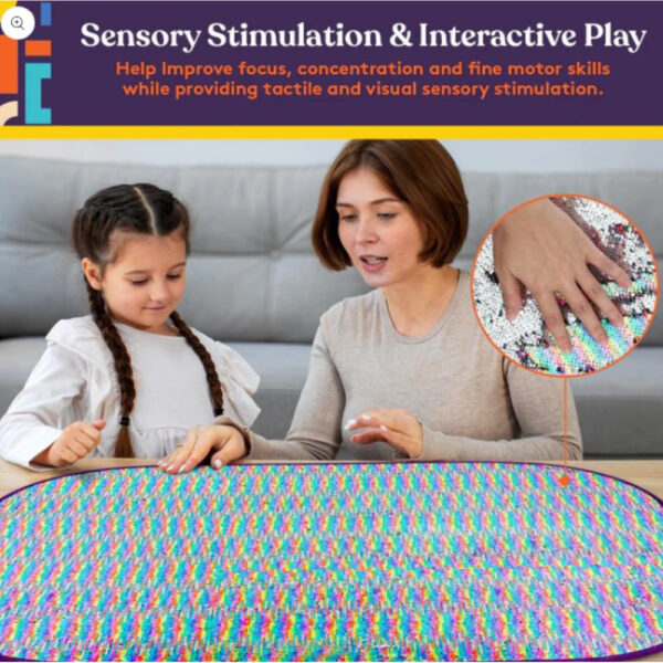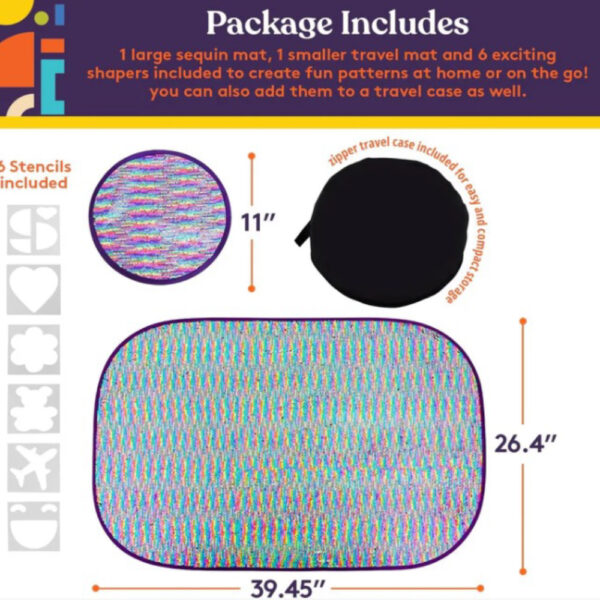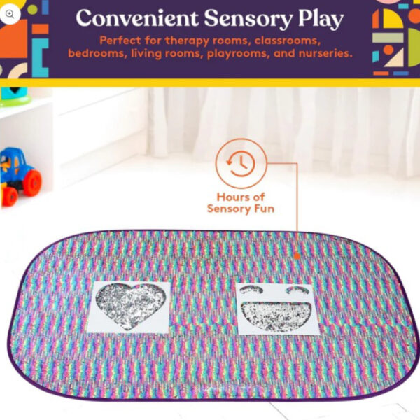 - Pequeño juguete de viaje con lentejuelas: Como complemento al panel de tela con lentejuelas, también hemos incluido un pequeño juguete de viaje cubierto de lentejuelas que te permite llevar tu juego sensorial a todas partes. Ideal para viajes largos en coche o para disfrutar del juego tranquilo en casa.